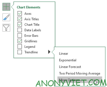 • Nhấp vào dấu + ở bên phải biểu đồ, chọn Tendline, sau đó nhấp vào More Options.