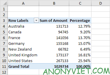 • Trường Amount vào vùng Values.