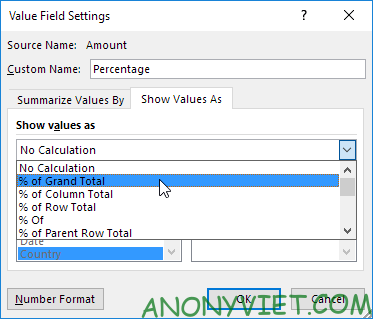 • Trường Amount vào Values.