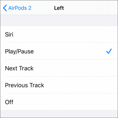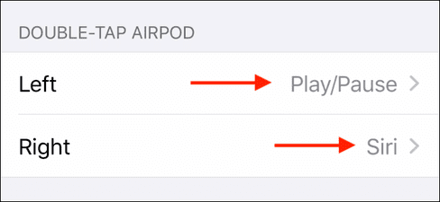 Các cử chỉ chạm trên AirPods có thể được tùy chỉnh. Theo mặc định, chạm 2 lần sẽ gọi Siri. Bạn có thể đổi thành các hành động như Tạm dừng hoặc Chuyển bài. Chọn bên Trái hoặc Phải để thay đổi hành động.