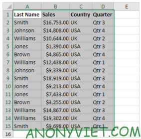 - Chọn phạm vi dữ liệu cần tô màu.