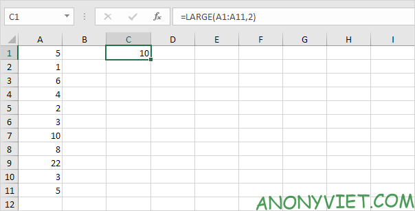 Đầu tiên, bạn sẽ sử dụng hàm LARGE để tìm số lớn thứ hai bằng cách sử dụng công thức phù hợp.