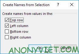 Tạo tên vùng trong Excel