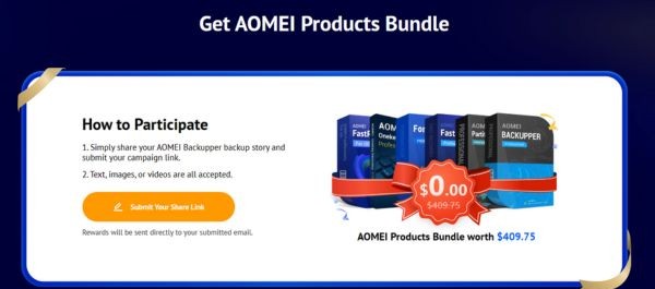 Mọi người tham gia đều được nhận key phần mềm AOMEI Backupper Home trị giá 29.95$, mở khóa các tính năng sao lưu và đồng bộ hóa cao cấp.