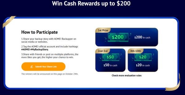 Chương trình giveaway AOMEI Backupper mang đến ba loại phần thưởng dành cho người tham gia: