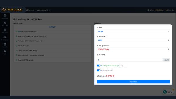 • Bước 2: Chọn gói Proxy phù hợp và thiết lập thông tin kết nối.