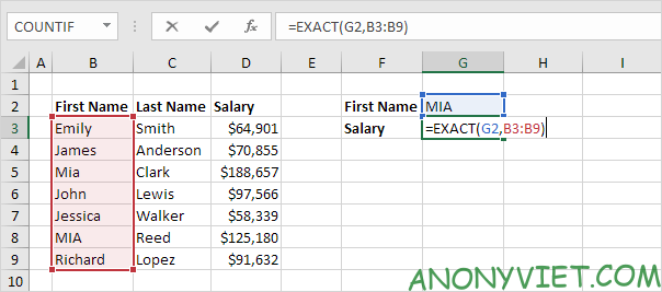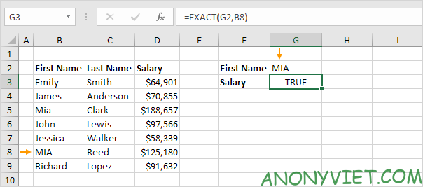 Đầu tiên, bạn cần sử dụng hàm EXACT để so sánh các chuỗi. Hàm này sẽ trả về TRUE nếu hai chuỗi giống nhau hoàn toàn.